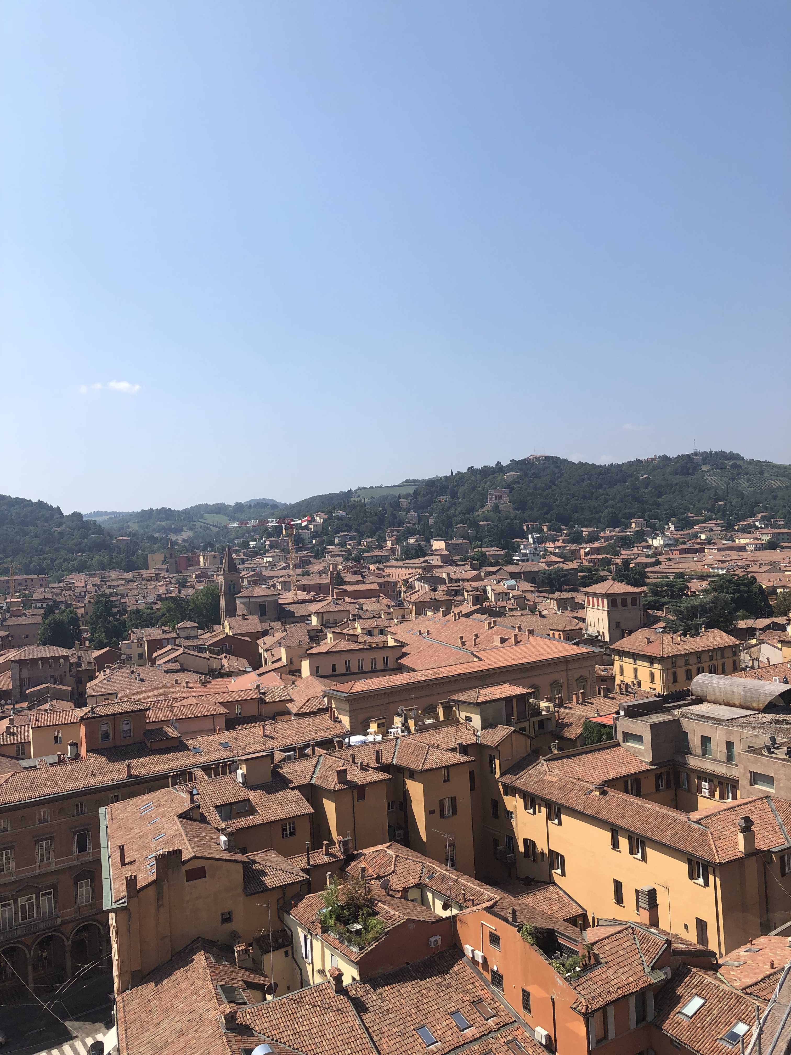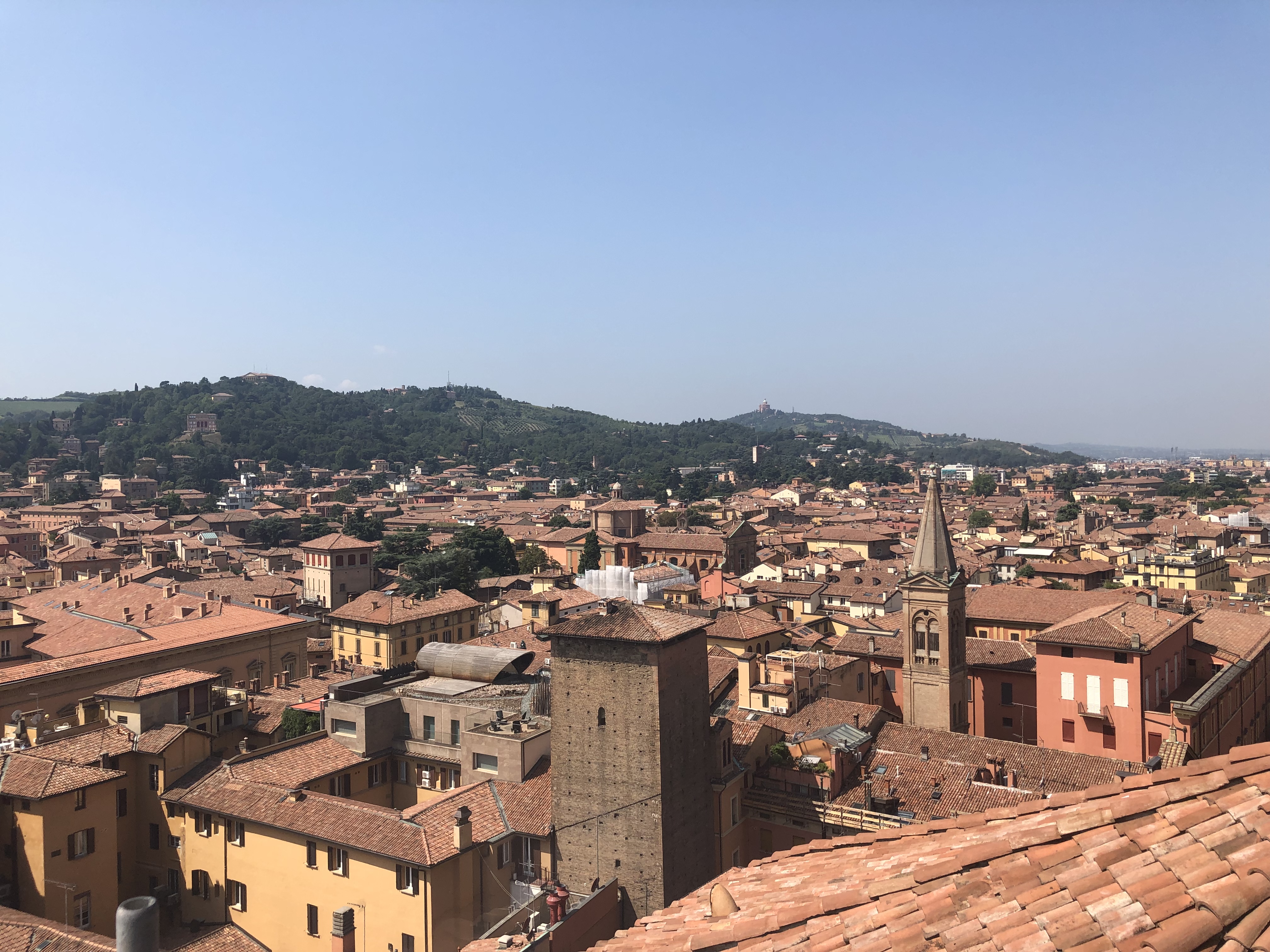 There are two of them, actually. Asinelli towers or Le due Torri are the symbol of Bologna. They are located in the wider centre and you can climb up if you want (which we did not know:D and it was too hot anyway:D).