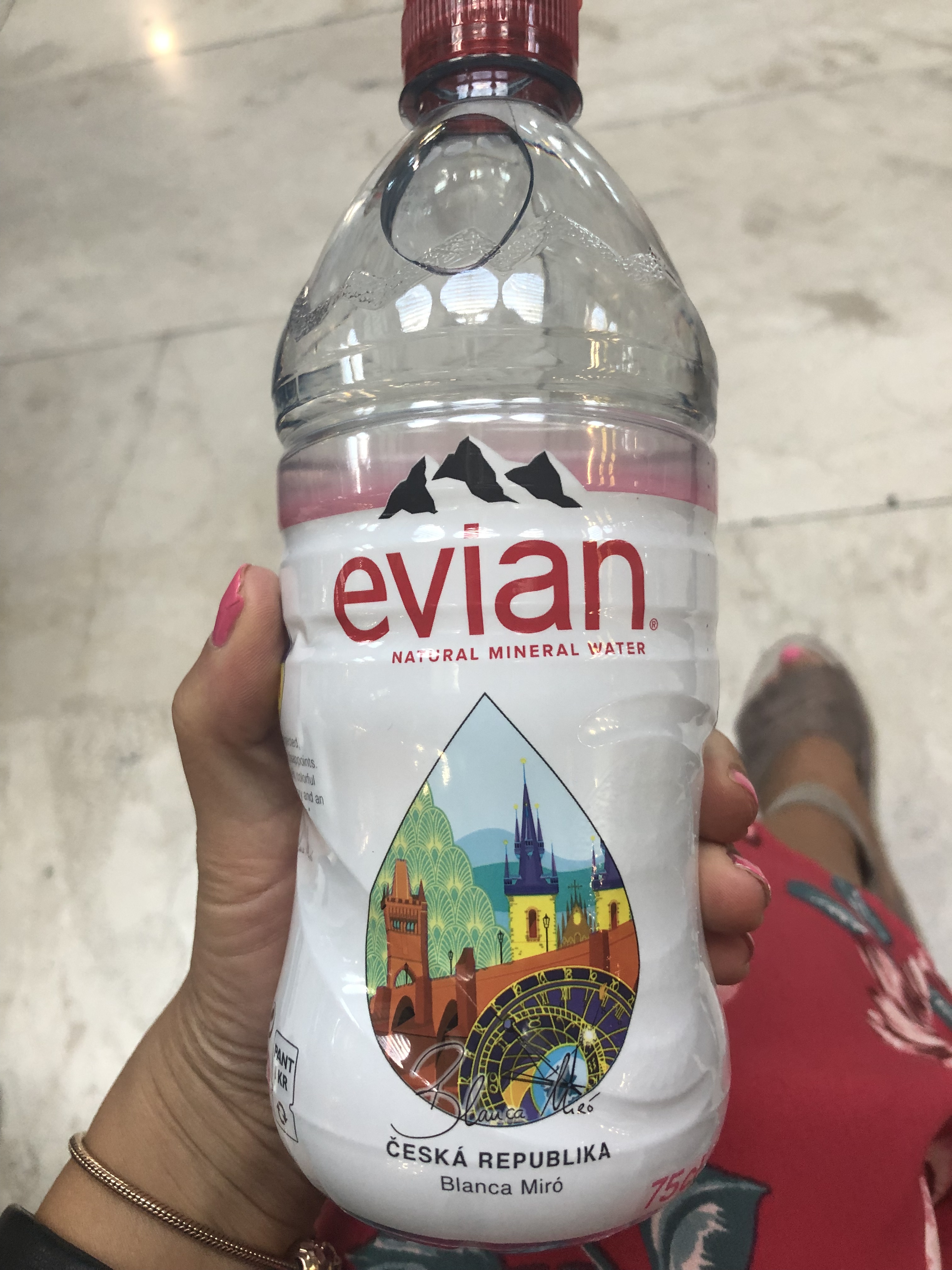 Airport Madrid: I bought Evian right after the arrival and what really made my day was this limited edition bottle. I come from Slovakia🇸🇰🇸🇰🇸🇰 but they only had Czech, Spain, Italy, Portugal and Cyprus. Czech has always been very close to my heart🇨🇿🇨🇿🇨🇿 so I got this one😍.