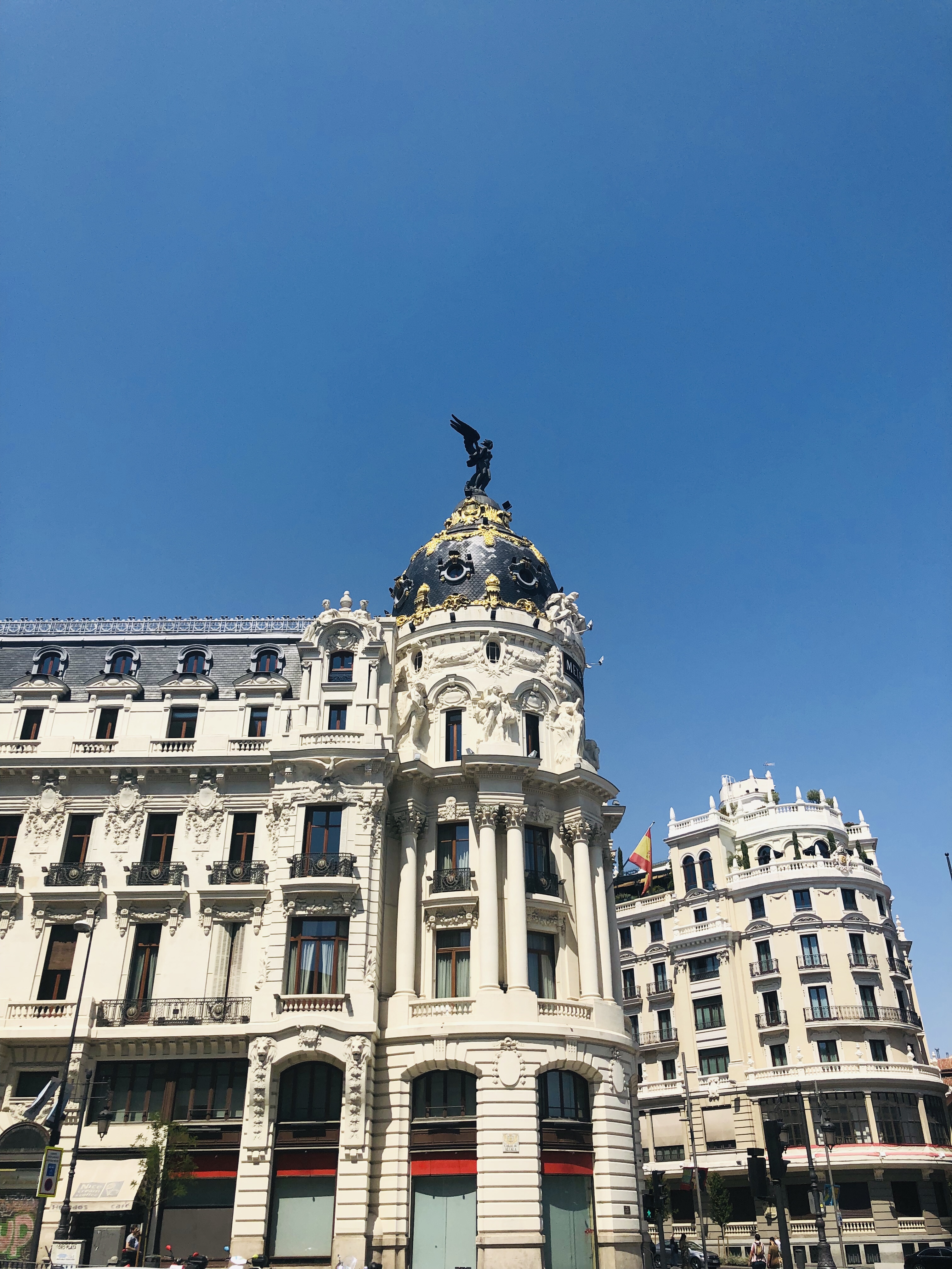 Plaza de Espaňa: the tallest building in Madrid, famous luxurious hotel but only a house for us passing by and looking at a very long que to get upstairs.