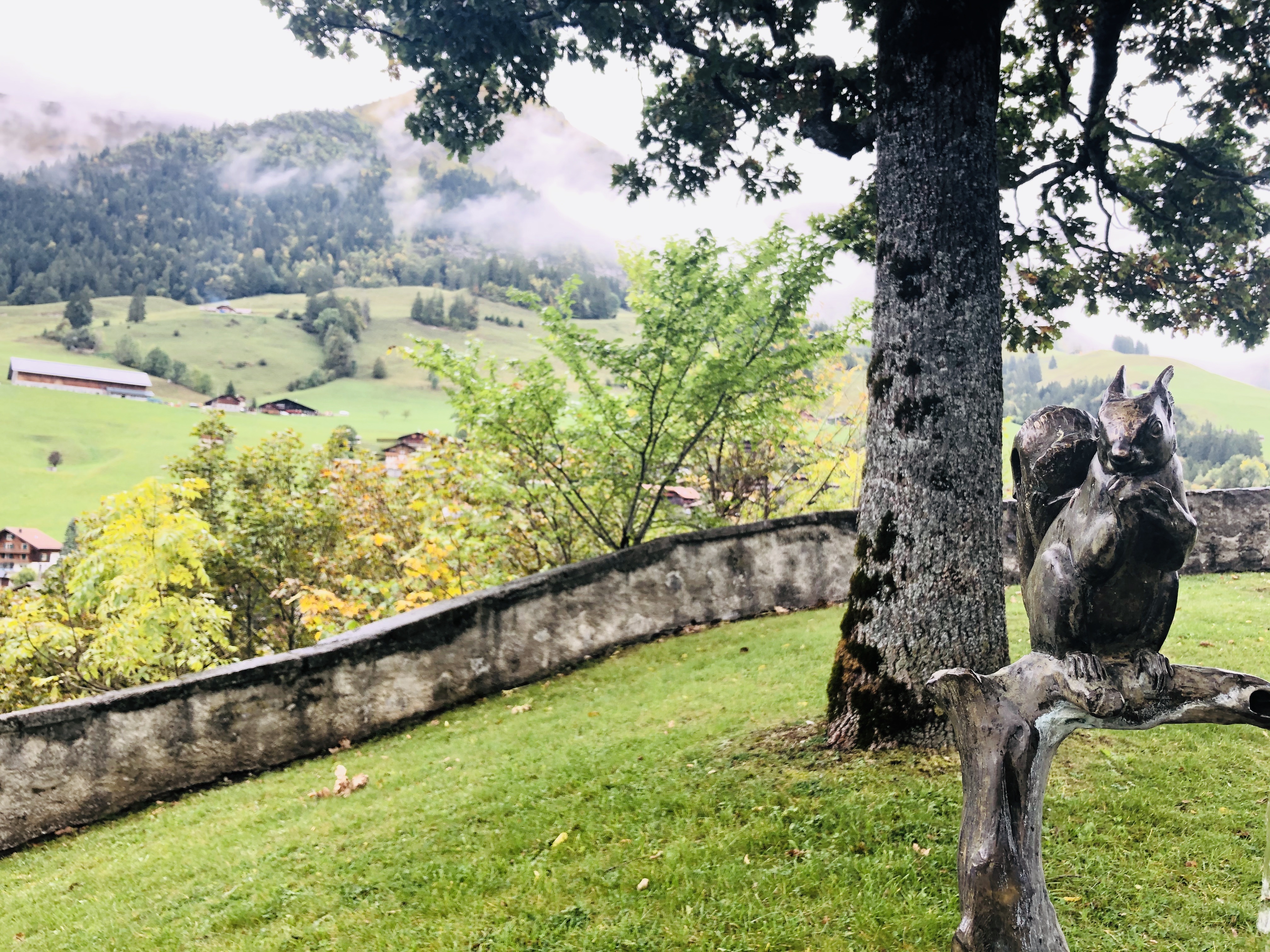 Back to our trip… In the middle of the village, there is a small church on a hill with a fountain and a cute squirrel sculpture.