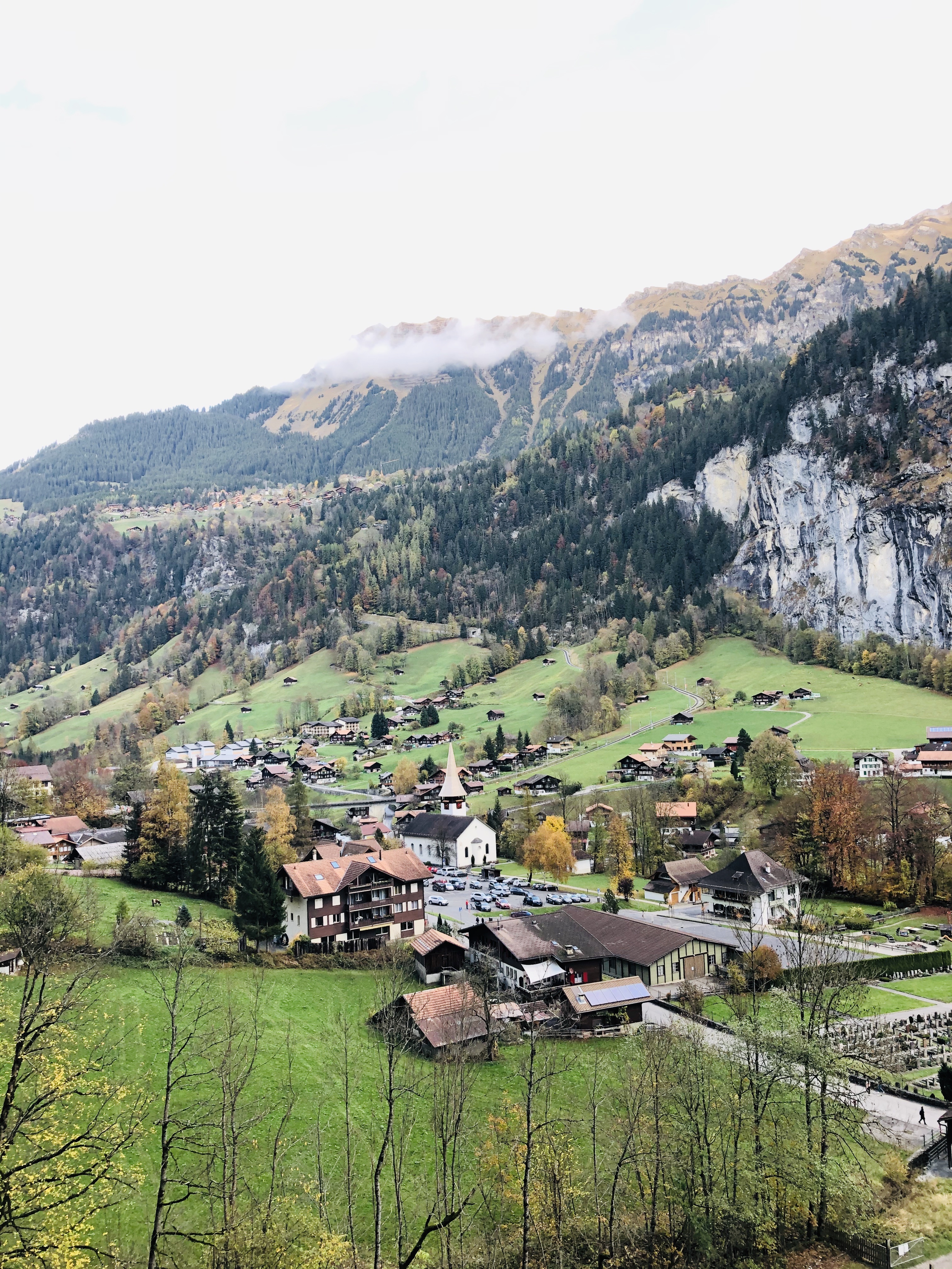 Last but not least, we visited Lauterbrunnen. It is a village surrounded by mountains, perfect for people who love hiking, skiing and all that good stuff. Those beautiful white peaks in the back are Alps and even though I really wanted to touch the snow that day, it was just way too far and unreachable by car.